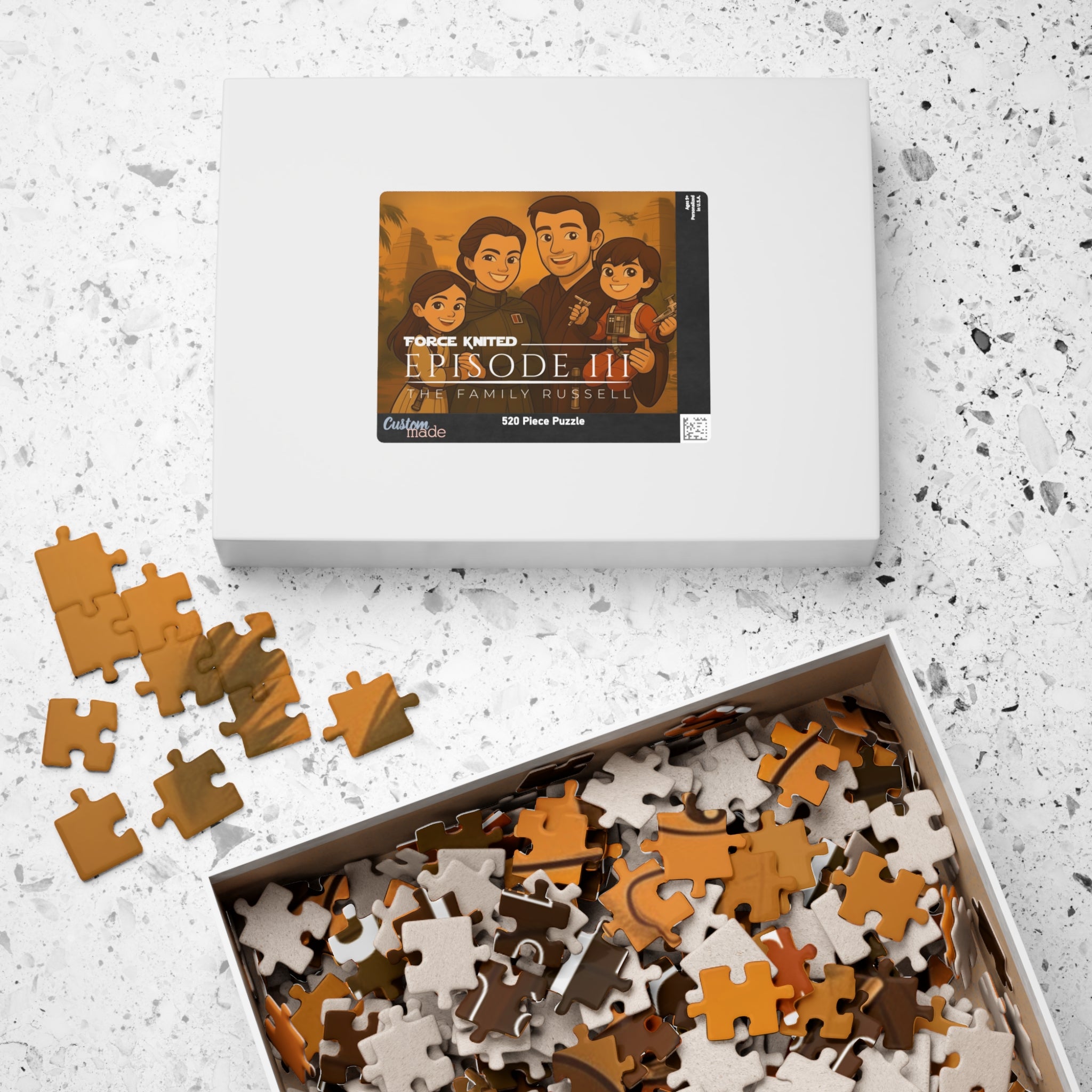 Your beautiful, high-quality puzzle arrives, ready for a family night unlike any other. The only thing you need to do is place the first piece.